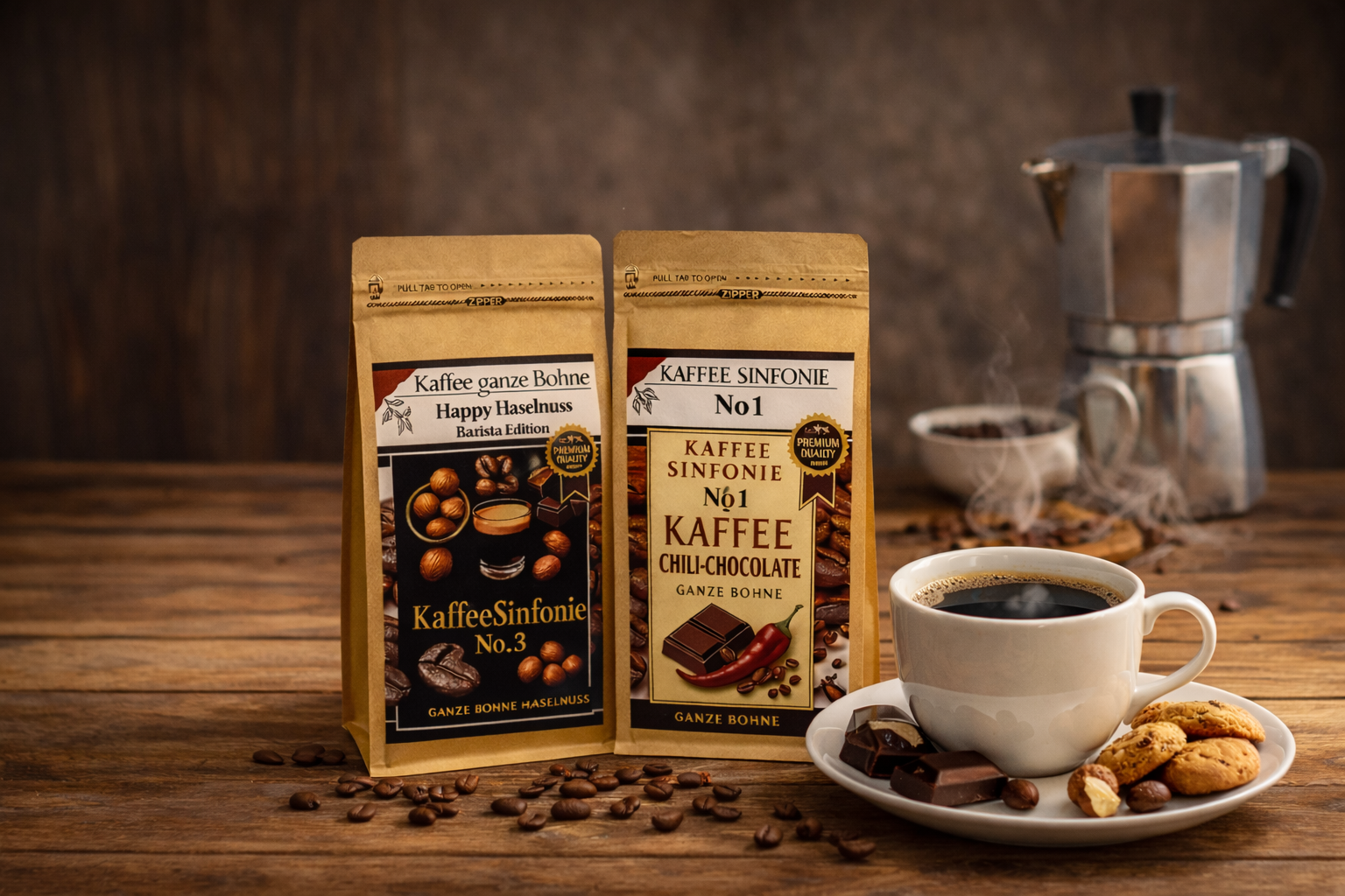 Kaffee Bohnen Set Kaffee ganze Bohne| 2x250g Haselnuss+Chili Schokoladen Kaffee| Arabica Kaffee