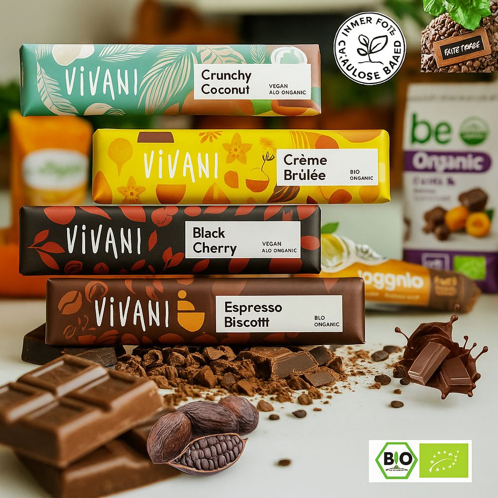 Die Vivani Schokoriegel sind 100 % vegan, bio-zertifiziert und frei von Zusatzstoffen. Geschmack in bester Qualität.