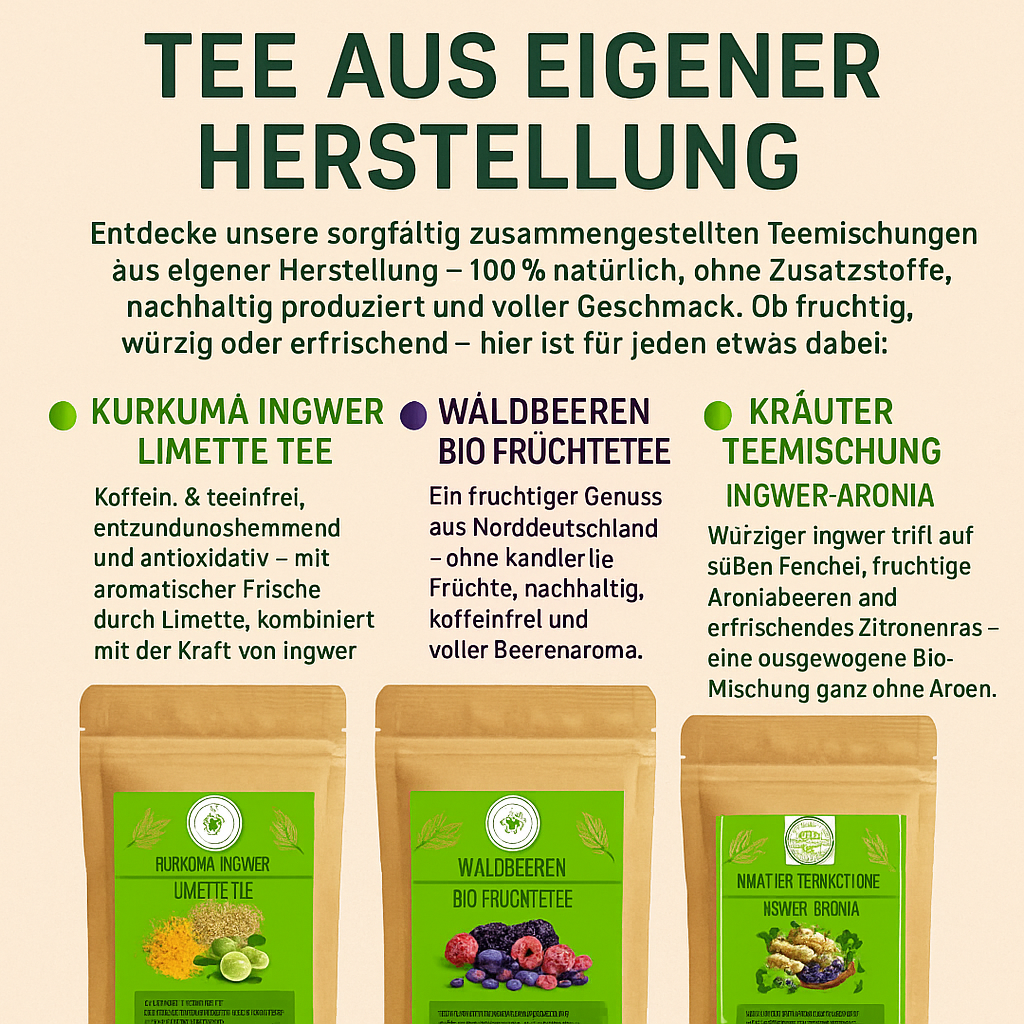 Bio-Tee aus Deutschland trägt meist das deutsche und/oder EU-Bio-Siegel – ein Zeichen für ökologischen Anbau ohne chemisch-synthetische Mittel. Das schützt die Umwelt, fördert die Artenvielfalt und unterstützt regionale Landwirte.