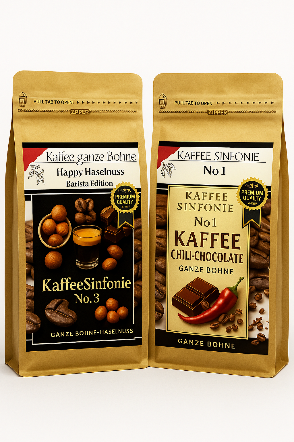 Kaffee Bohnen Set Kaffee ganze Bohne| 2x250g Hasselnuss+Chili Chocolate| Arabica Kaffee
