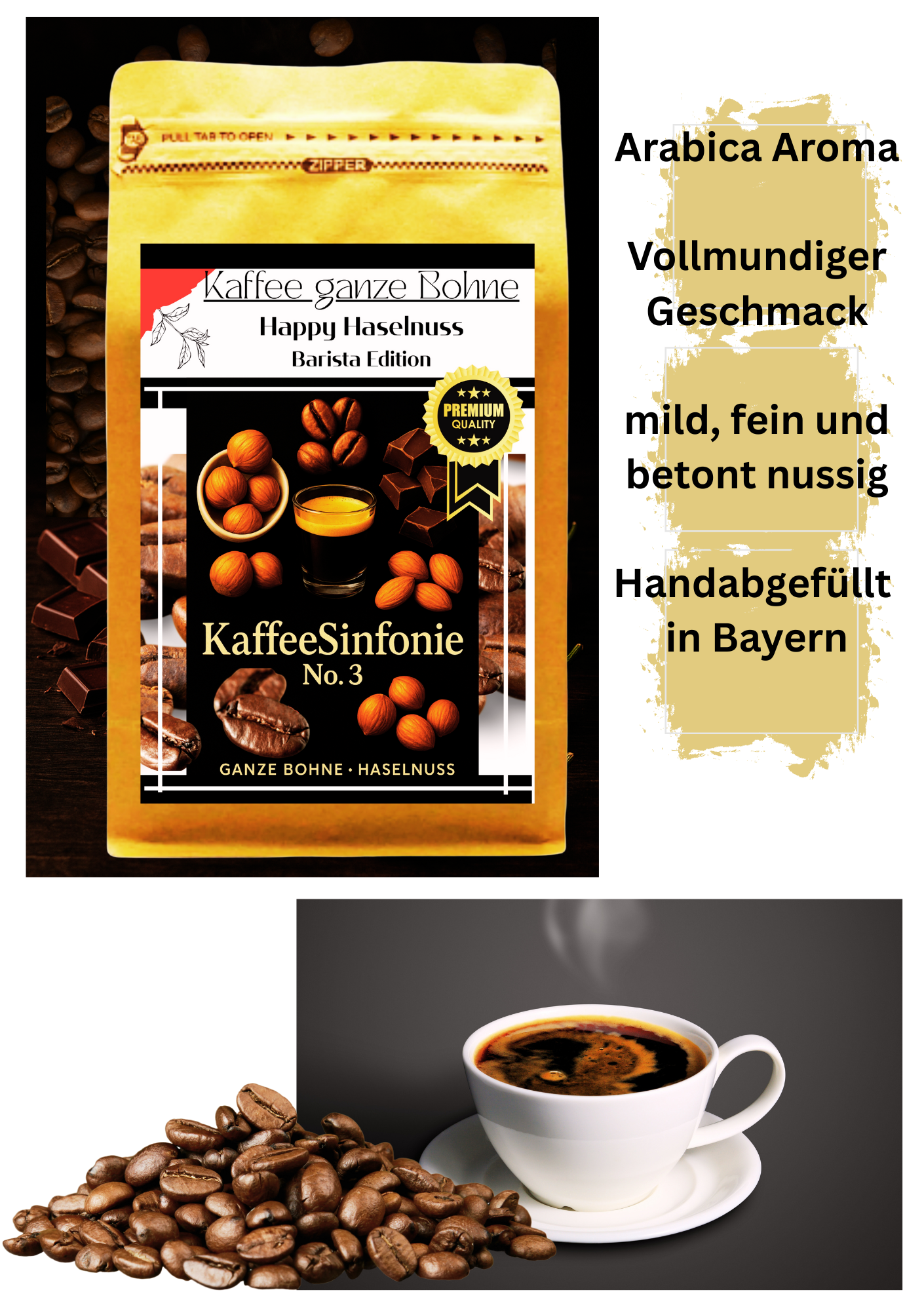 Tauche ein in die Welt des sanften Genusses. Unser Haselnuss-Kaffee bietet ein vollmundiges und aromatisches Kaffeeerlebnis, das von der warmen, cremigen Süße gerösteter Haselnüsse umspielt wird. Schon beim Mahlen entfaltet sich ein betörender Duft, der Vorfreude weckt. Ob als Muntermacher am Morgen, als gemütliche Auszeit am Nachmittag oder als Basis für einen besonderen Latte – die harmonische Verbindung von Kaffee und Haselnuss macht jede Tasse zu einem unvergesslichen Erlebnis. Perfekt für alle, die eine sanfte, nussige Note in ihrem Kaffee lieben.