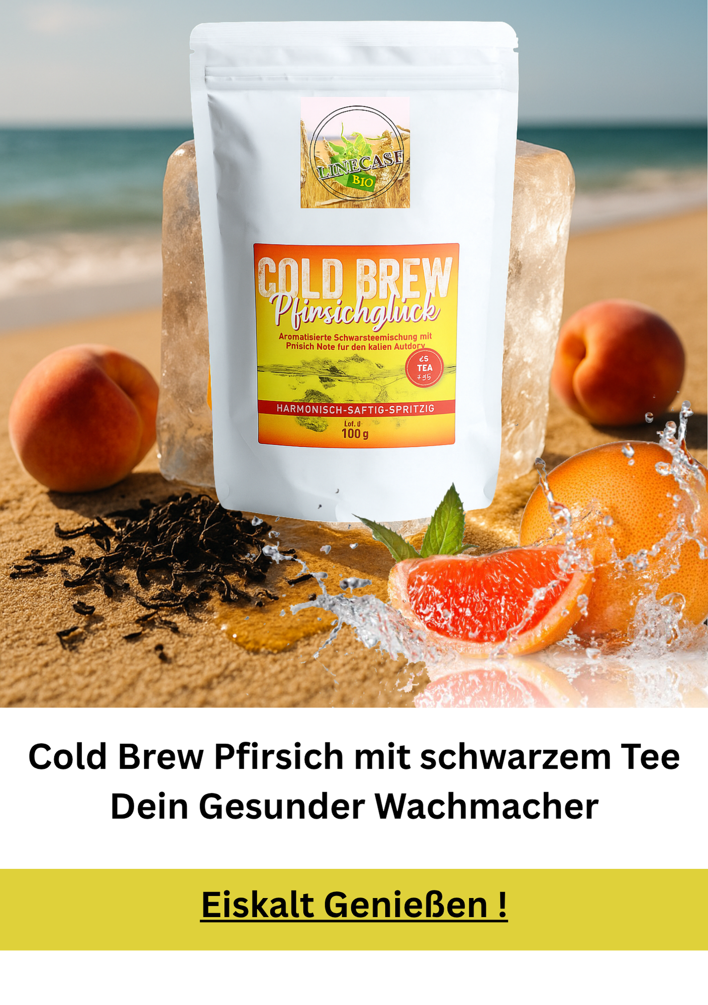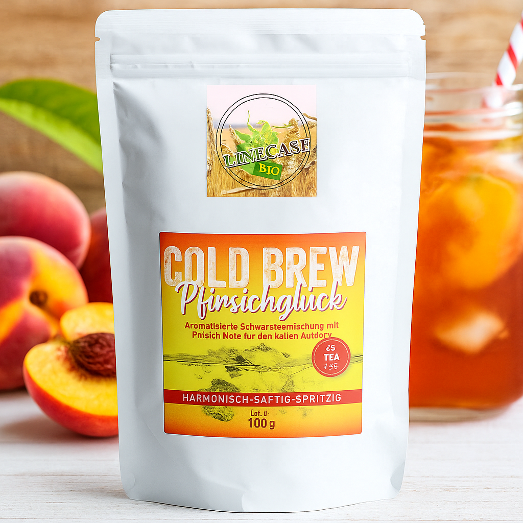 Erleben Sie erfrischenden Genuss mit unserem Cold Brew Pfirsich, einer harmonisch abgestimmten Schwarzteemischung mit natürlichem Pfirsicharoma – perfekt für den kalten Aufguss.