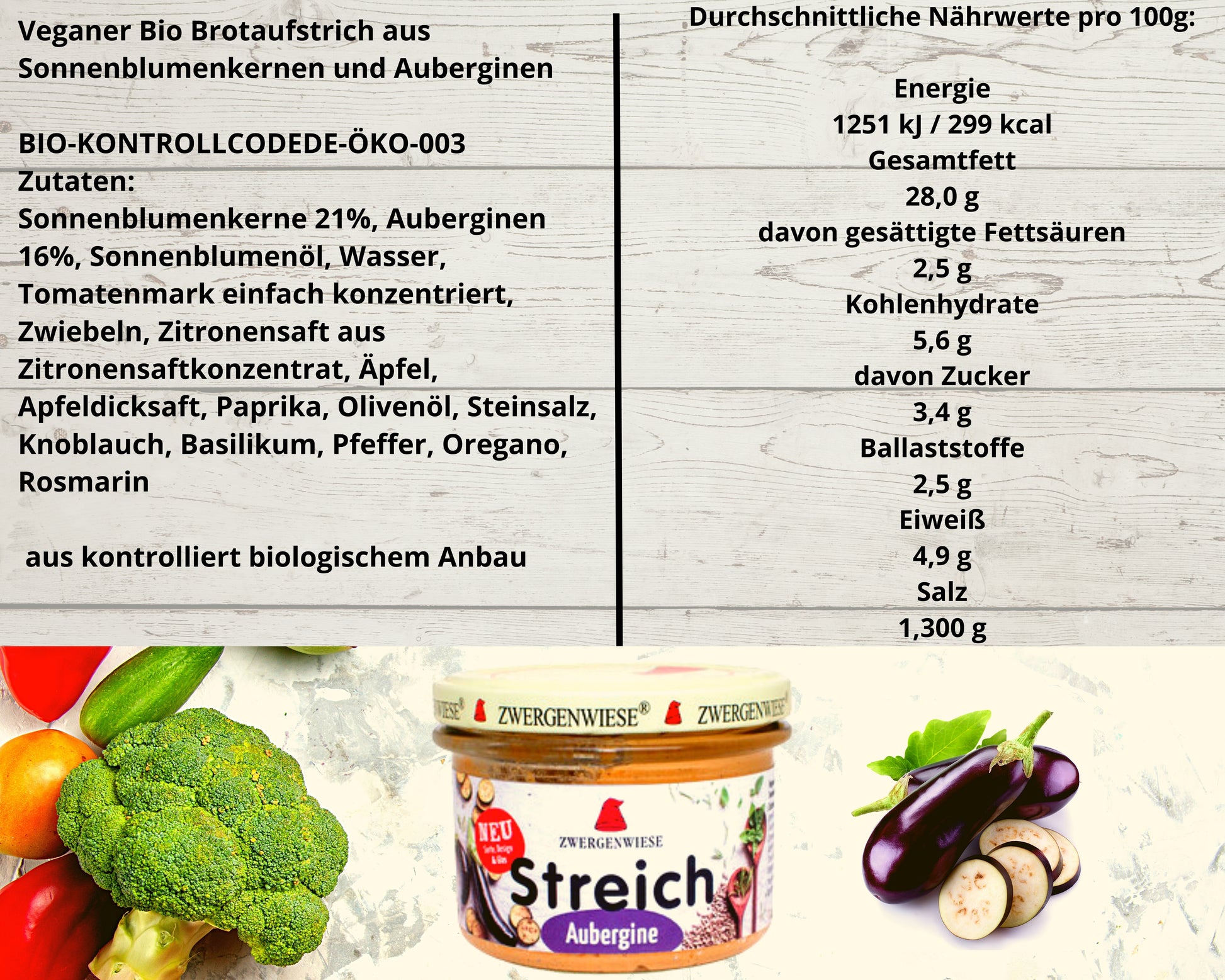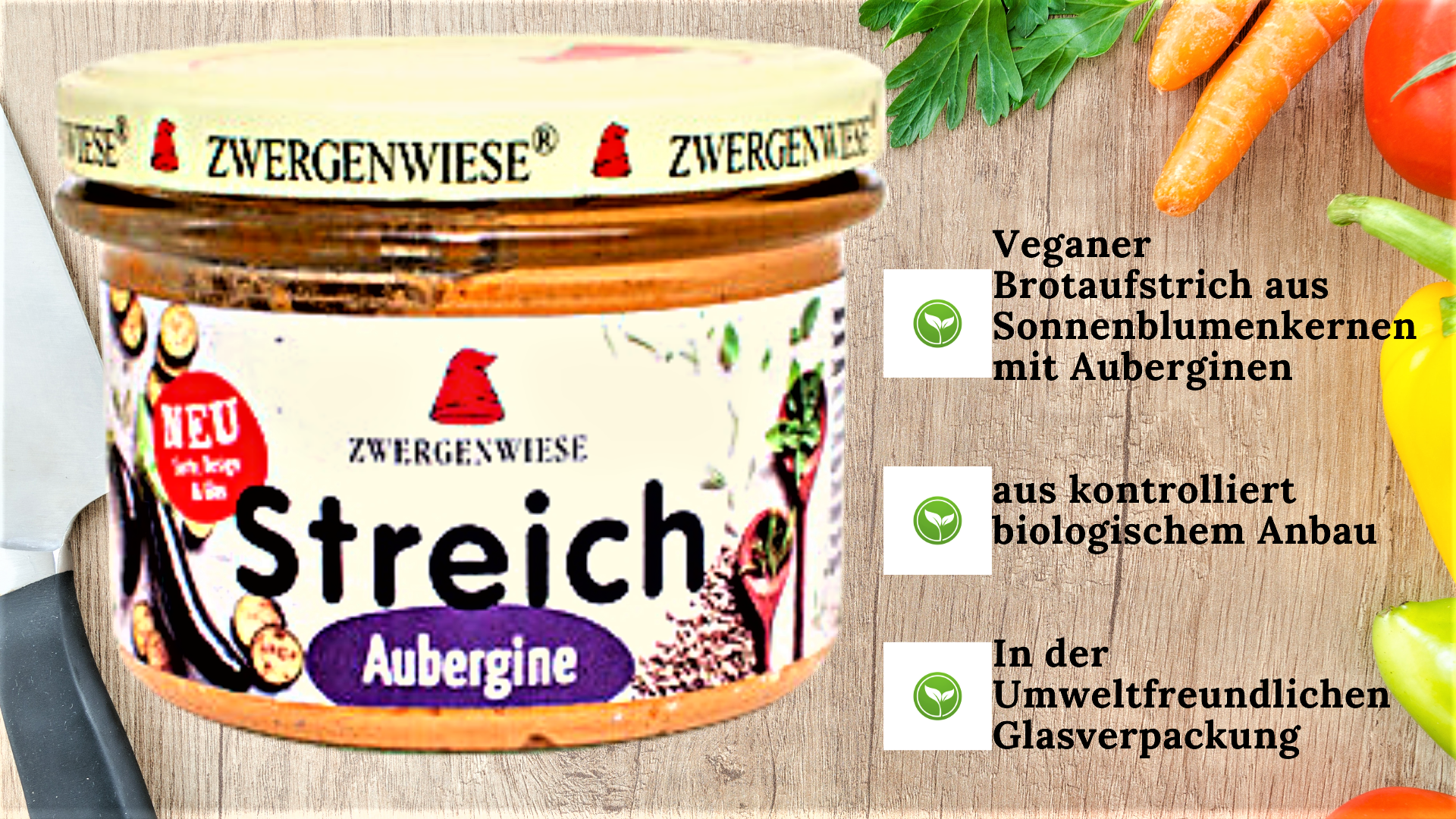 Zwergenwiese Aubergine Streich 180g| Zwergenwiese Aufstrich| Bio&Veganer Streich| Veganer Brotaufstrich