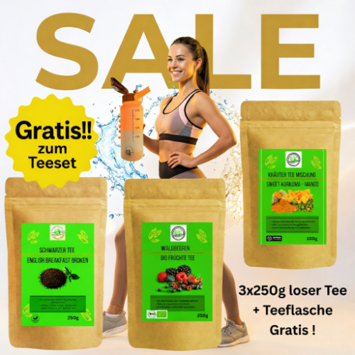 Tee Aktion - 3x250g loser Tee + Teeflasche Gratis